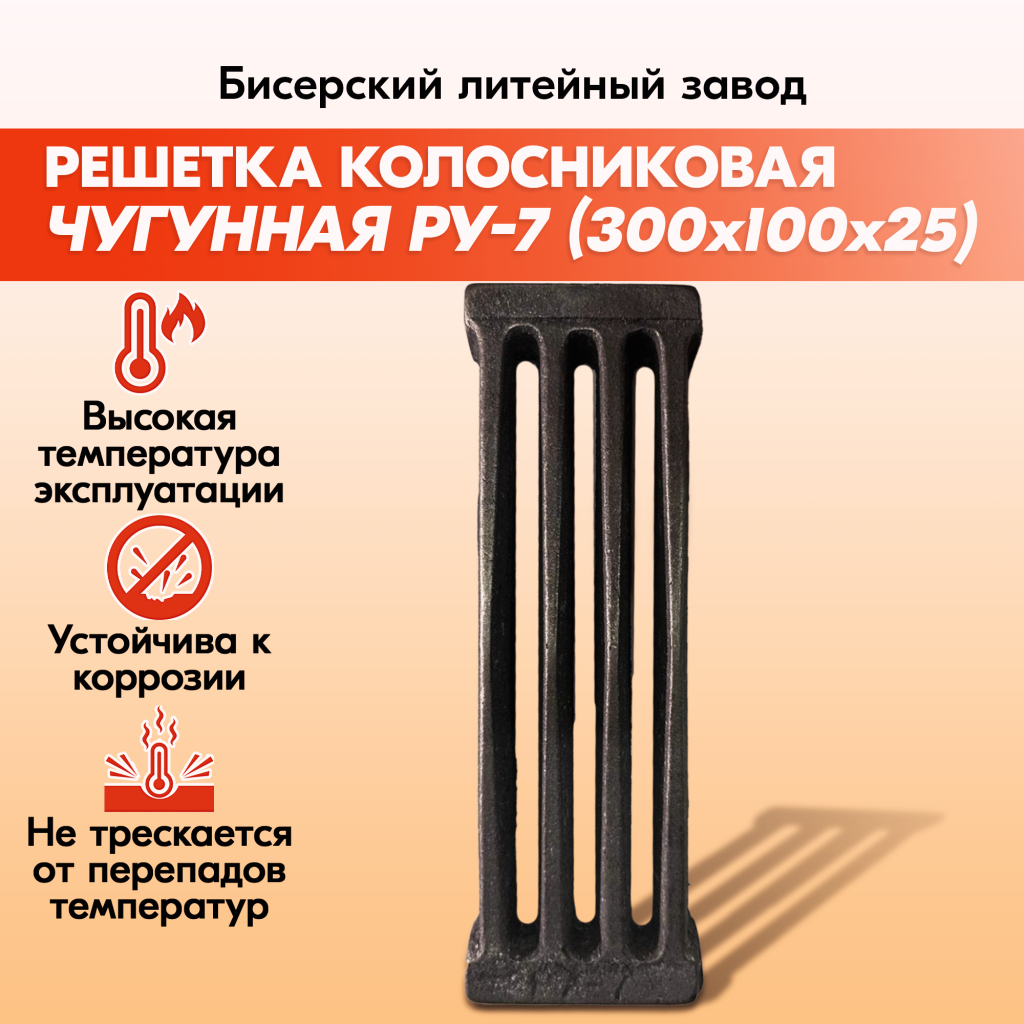Обращаем внимание, что колосниковая решетка из чугуна РУ-7 — это 1/2 колосниковой решетки для угля РУ-2 и предназначена для укладки с решеткой РУ-2 в увеличенные по ширине топки печей размером 300х300 мм и больше.