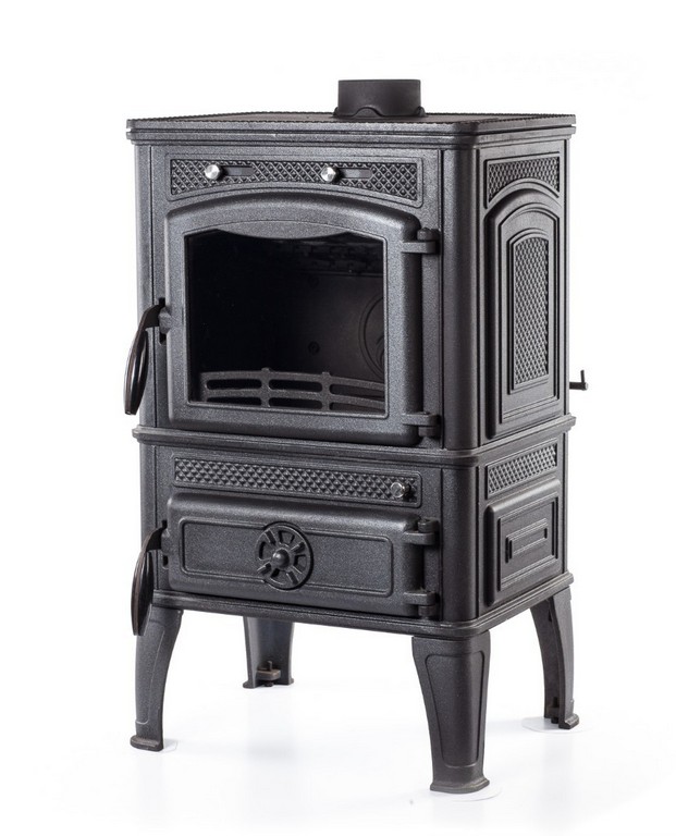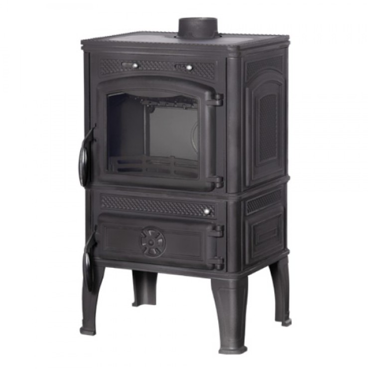 Тепловая мощность печи 12 кВт. КПД 75%. Систем длительного горения, работа в режиме тления до 8 часов. Система регулировки подачи воздуха на обдув стекла. Система сброса золы с колосник. Крышка прочистки на верхней панеле. Загрузка дров фронтальная. Диаметр дымохода 120 мм. Расположение дымохода сверху или сзади. Отделка антрацит. Размер стекла 324х270х4 mm. Гарантия 5 лет.